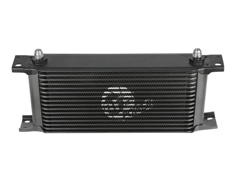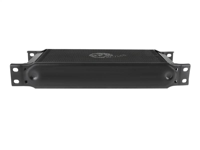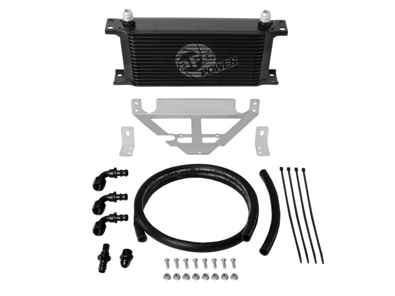 This BladeRunner Transmission Oil Cooler uses a durable brazed all-aluminum stacked-plate construction that allows for greater efficiency and lower pressure drop than a standard tube-fin design. Designed to work in-line with your vehicle's original equipment. Provides lower transmission oil temperatures to reduce transmission wear and extend life of oil viscosity. The BladeRunner Transmission Oil Cooler kit makes installation simple with plug-and-play transmission line adaptors, direct-fit mounting brackets, stainless steel hardware, and leak-proof AN connections. No cutting or alteration of factory hardware is required. Feature a durable black finish with a laser-etched aFe POWER logo on the front and includes black-anodized billet aluminum AN fittings for a sleek appearance.