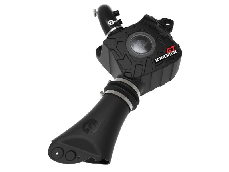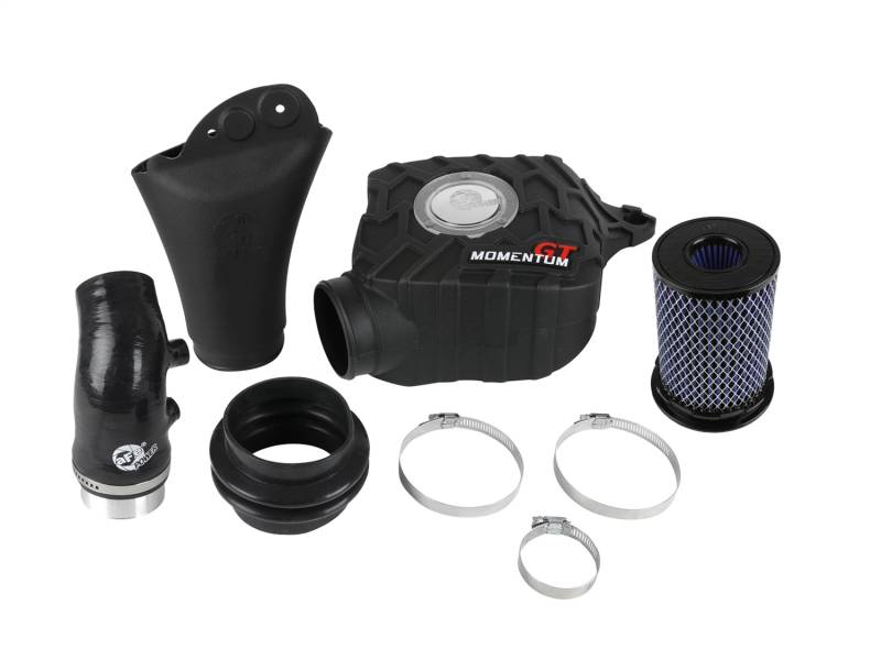 Momentum's innovative filter-to-housing interface was built to feature the largest air filter possible. This 7" tall 360-degree radial flow air filter features a 2-1/2" flange and our pre-oiled Pro 5R media with five layers of progressively finer cotton gauze media for maximum performance. It provides your engine with the largest amount of high-flowing air and delivers the highest power gains in most cases. This media is perfect for street and/or track use. Its inverted top makes for more filter surface area, resulting in longer service intervals, while its expanded metal provides impact protection. The one-piece sealed housing, constructed of heat-resistant XLPE (cross-linked polyethylene) polymer, features our patent-pending filter-to-housing interface. Its innovative design minimizes the total number of parts, making for an easy installation. A clear sight window allows for hassle-free filter inspection, without having to disassemble your system. This system uses a high performance reinforced silicone intake tube to achieve maximum power gains while maintaining a perfect fit. The air inlet duct is constructed from XLPE that is heat soak resistant and extremely durable. It is CAD designed for perfect fitment and connects to the housing with a silicone bellow coupling to accommodate engine movement. High quality premium clamps and a silicone bellow coupling are used for durability while also providing the most secure installation available. Momentum GT intakes are designed with fewer parts for a quick and simple installation.