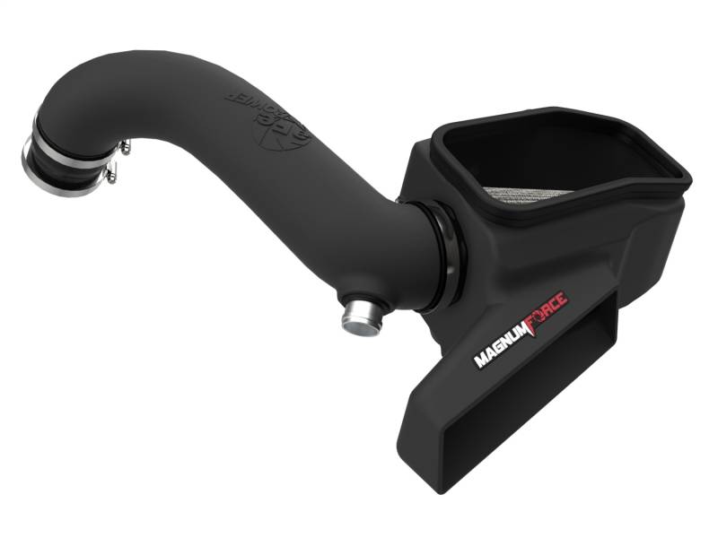 This 360-degree radial flow air filter features a 3.5" flange and our oil-free Pro DRY S media with three layers of synthetic media for maximum convenience. Its progressive layering provides great filtration efficiency and dust holding capacity, while not requiring the use of oils. This media is best suited for street use. Its inverted top makes for more filter surface area, resulting in longer service intervals. This system features a high quality, computer-designed, dyno-tuned intake tube to achieve maximum power gains while maintaining a perfect fit. Its XLPE material is heat soak resistant and extremely durable. It features an aFe Power design inspired by European vehicles. The included massive air filter is surrounded by an open-element XLPE (cross-linked polyethylene) polymer housing that minimizes warm engine air for maximum performance. Its open design allows for easy viewing of the air filter and delivers an aggressive Air Intake sound. It's design incorporates the OEM air scoop to ensure that it gets the coldest air available. This is a direct fit intake system that utilizes factory mounting points and requires no cutting or modifications. All necessary clamps, couplings, and hardware are included. Its revolutionary design, featuring our unique filter-to-housing interface, uses half the number of parts of a traditional cold air intake system. Included billet aluminum fittings allows stock connections to transfer over seamlessly.