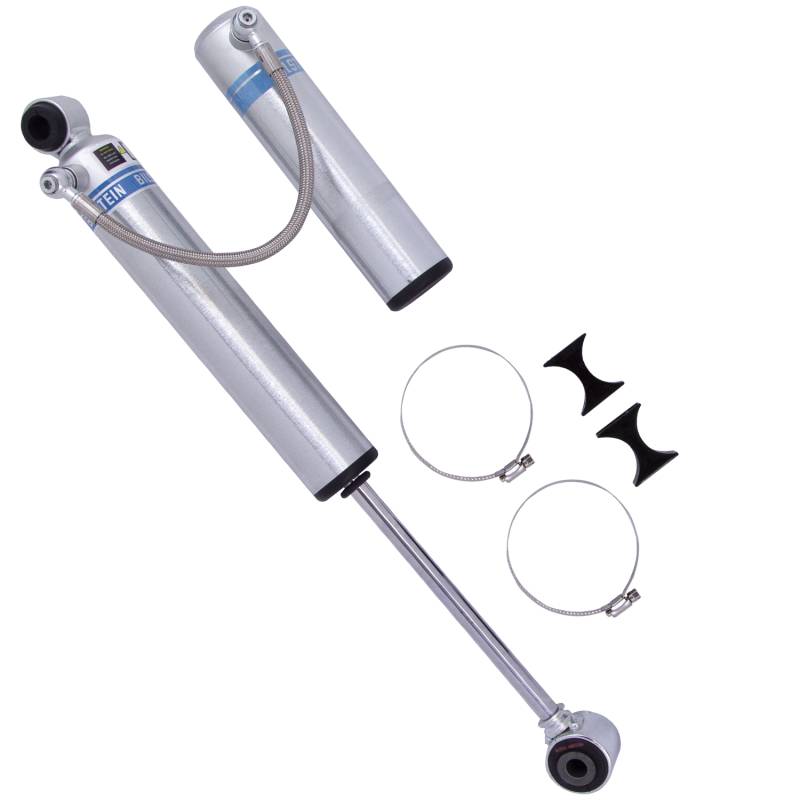Bilstein B8 5160 remote reservoir shock absorbers are designed as a direct fit solution for lifted trucks and SUVs. The remote reservoir will offer increased cooling capacity and wheel travel to optimize overall performance compared to a traditional shock absorber. These shock absorbers feature a monotube design for consistent fade free performance and utilize velocity sensitive digressive valve settings which are tuned for each specific application. Each shock absorber is fitted with a unique 360 degree swivel banjo hose fitting and an attractive billet reservoir mount where applicable providing a clean low profile installation. B8 5160 remote reservoir shock absorbers will increase overall durability of your vehicle allowing you to conquer the harshest of off-road environments.