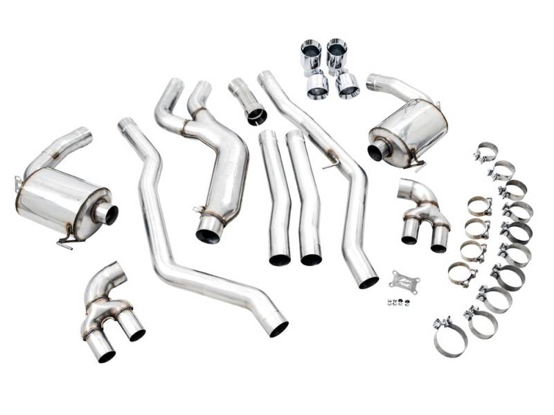 Presenting The Best Sounding Exhausts on the Planet for the BMW G20 M340i: At the intersection of sophistication and aggression lies the Touring Edition Exhaust. A dual 3" T304L stainless steel downpipe-back configuration, the AWE Touring Edition Exhaust is the perfect dose of steel for drivers looking for straight-pipe performance while not sacrificing daily drivability: a deep, sophisticated exhaust note with zero drone at highway speeds. Featuring a stamped stainless steel merge upstream equivalent to dual 3" tubing coming right off of the downpipe. Translation: an impressive 65% increase in flow over stock that future proofs for downpipes of various sizes. Beyond the unique merge, the exhaust splits into dual 3" piping to allow optimal flow throughout the entire exhaust route. Bringing up the rear, the Touring Edition features AWE's patented drone-canceling solution, 180 Technology, which targets and omits drone-prone frequencies. What's this mean for you? You'll be tuned into a pure, full-bodied B58 soundtrack unlike any other. Equipping a downpipe? Read this (seriously): The Touring Edition Exhaust is available as non-resonated or resonated. We recommend the non-resonated variant for vehicles equipped with the stock downpipe. If your M340i is equipped with an aftermarket downpipe, we recommend going resonated. Have the stock downpipe but plan to go aftermarket later? No worries, you can swap in the resonated midsections with ease via an AWE Resonator Conversion Kit. Hit us here if you're in need of this Conversion Kit.Track Edition ExhaustTip Options: The Touring and Track Edition Exhausts feature statement-making quad 102mm, double-walled, slash-cut tips in either chrome silver or diamond black, complete with a stamped AWE logo. For those who want to keep their OE tips in place, we have configurations that were designed specifically to do that. Just for you.