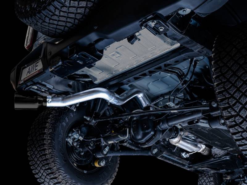 AWE 2021+ Ford Bronco 0FG Single Rear Exit Exhaust w/Diamond Black Tip & Bash Guard