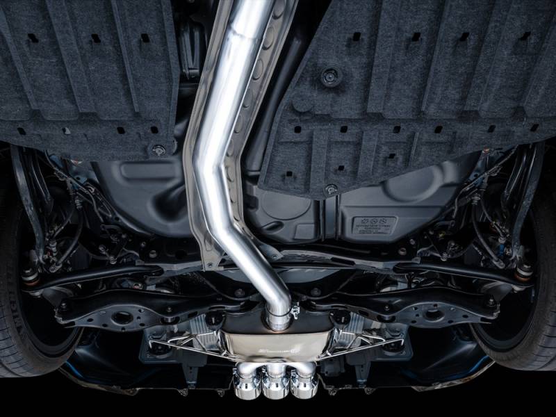 A 3" T304L stainless steel downpipe-back configuration, the Touring Edition Exhaust is the perfect dose of steel for drivers looking for straight-pipe performance, a deep, sophisticated exhaust note, and zero drone at highway speeds. Featuring an integrated front pipe, robust midpipe resonator, thick-walled T304L stainless steel, and a special iteration of AWE's 180 Technology bespoke for the FL5 in the rear, the Touring Edition is the do-it-all configuration for everyday drivers. Thanks to AWE's patented drone-canceling 180 Technology, the Touring Edition keeps all of the commotion to the rear of the vehicle where it belongs, and destroys drone-prone frequencies that would otherwise resonate within the cabin at highways speeds � all packaged perfectly to fit within the undertray of the bumper with plenty of clearance. The Touring Edition, and the 180 Technology within it, were both developed for use with and without an aftermarket catted downpipe. As exhaust gases exit the K20 engine and flow into an AWE 180 Technology equipped resonator, they pass through strategically located ports, and into reflection chambers. Sound waves, carried by these exhaust gasses, bounce off the walls of the reflection chambers. By controlling the size and location of the ports and the chambers, we also control when the sound waves exit the chambers. The specific timing of when the reflected sound waves rejoin the main exhaust flow creates a one-hundred-and-eighty-degree out-of-phase sound wave that cancels out problematic frequencies. All of this with a straight-through design- in other words, all the power, none of the drone. Throw in that it was designed and manufactured in the USA, and AWE's famous diamond black or chrome silver tips, and you're looking at the best sounding, longest lasting, and best fitting exhaust for the FL5 - all backed by AWE's No CEL and Perfect Fitment Guarantee, and a Lifetime Warranty.