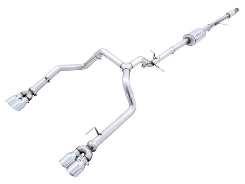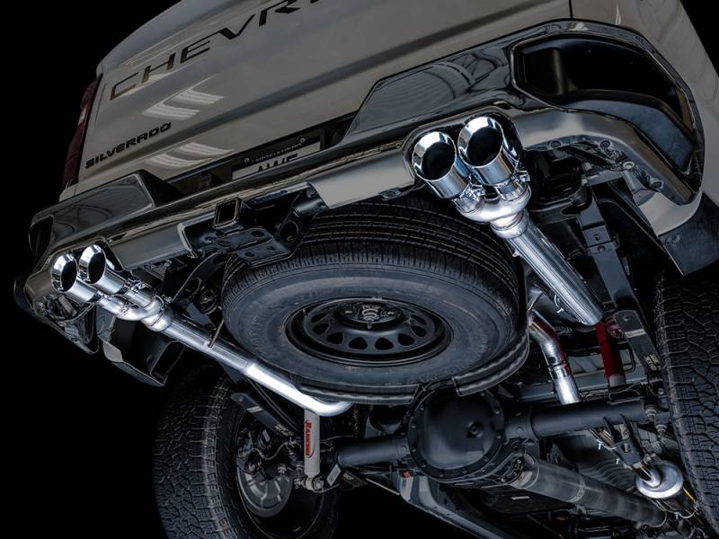 AWE 0FG Catback Split Rear Exit Exhaust for 4th Gen Silverado/Sierra 1500 5.3L (With Bumper Cutouts) - Quad Chrome Silver Tips