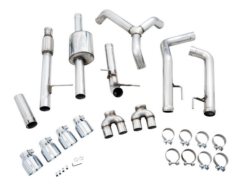 AWE 4th Gen GM 1500 5.3L 0FG Catback Split Rear Exit (w/ Bumper Cutouts) - Quad Chrome Tips