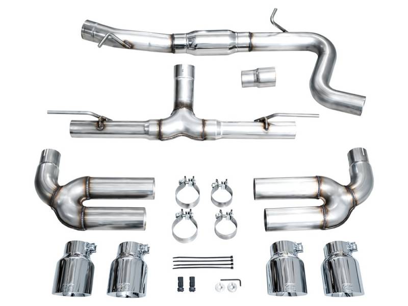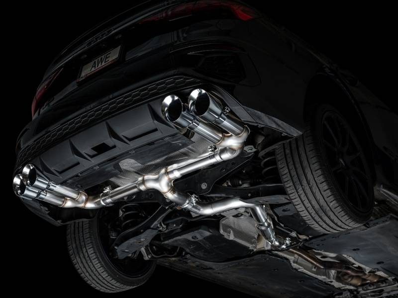 The Track Edition features a 3" inlet complete with an adapter to accommodate the factory downpipe perfectly while leaving an open 3" connection. Featuring minimal filter with one bullet resonator in the center, the Track Edition provides a full-bodied soundtrack at all times.. This configuration provides the best ratio of interior refinement and exterior rumble on the market. No valves needed. Switch driving modes and the exhaust will render the same result as a vavled exhaust. It's the do-it-all exhaust for every day drivers. Comes complete with quad 4.5" slash-cut, double-walled tips in chrome silver. The AWE Track Edition for the 8Y S3 is made in the USA and backed by AWE's Fitment Guarantee, 50 state emissions compliance, No Check Engine Light Guarantee, and the AWE Lifetime Warranty.