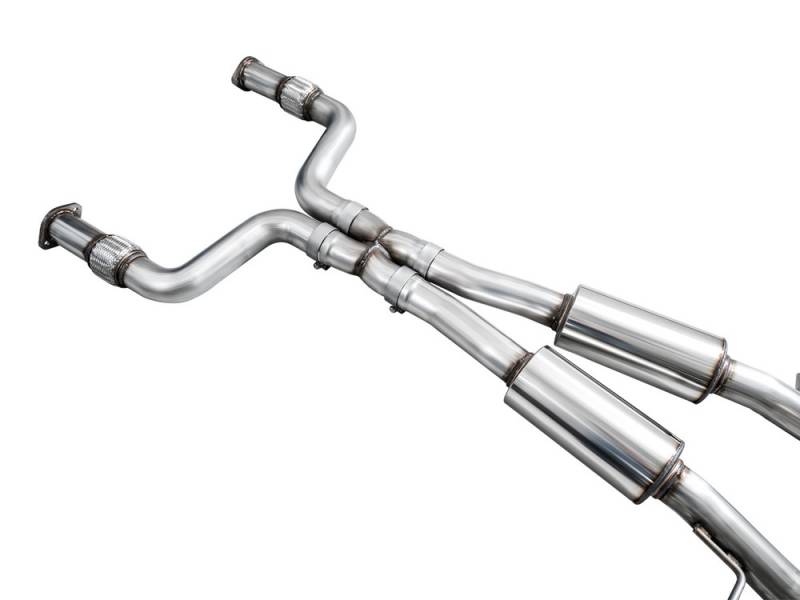 At the intersection of sophistication and aggression lies the Touring Edition Exhaust for the Nissan Z -- a 100% emissions compliant full 3" dual Cat Back built for big boost, equipped with a precision X-pipe and robust resonators. The Touring Edition features AWE's patented drone-canceling 180 Technology to destroy drone-prone frequencies and keep you comfortable in the cabin at cruising speeds while producing full bodied tones outside of the cabin. Each 180 Technology resonator features a straight-through design (i.e. if you were to look inside it would resemble the inside of a straight length of steel tubing) for optimum performance, and in conjunction with the dual 3" design, X-pipe, and robust resonators, this configuration perfect for drivers looking to get spicy upstream with lower downpipes and beyond. The kit comes complete with two 5" chrome silver slash-cut tips (also available in diamond black), and all necessary hardware for installation. Each exhaust comes complete with bespoke adapter plates and gaskets to AWE's dual 3" system to factory downpipes, removable if you ever want to add some new pipes upstream. All this supported by AWE's Perfect Fitment Guarantee, No CEL Guarantee, and Lifetime Warranty -- there's no wonder the AWE Touring Edition Exhaust has become the leader in Z performance. Please note, this product line is only confirmed to fit US models of the Nissan Z.
