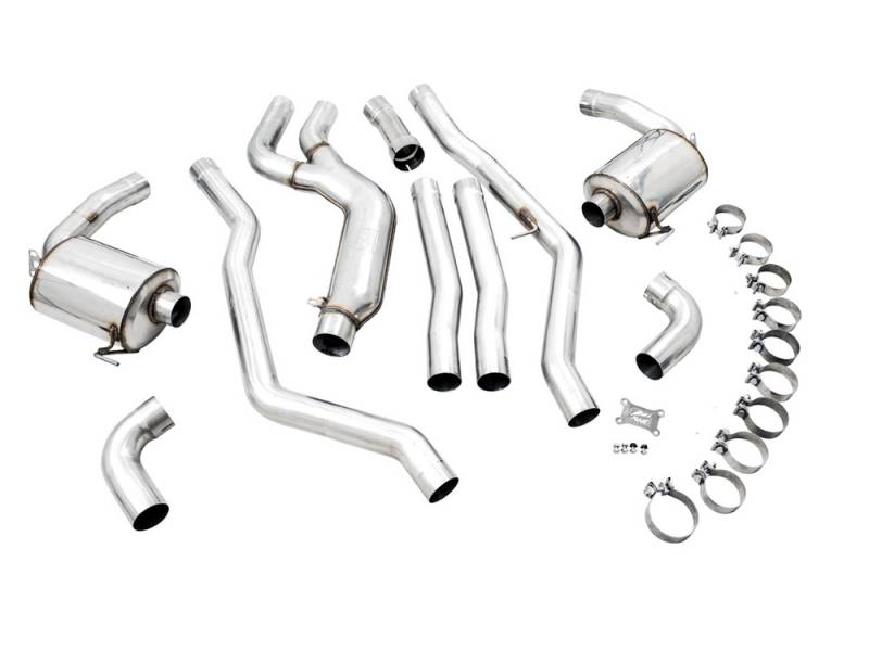 Features a mid-pipe inlet adapter to allow use with stock and aftermarket downpipes (with outlets of 80mm)