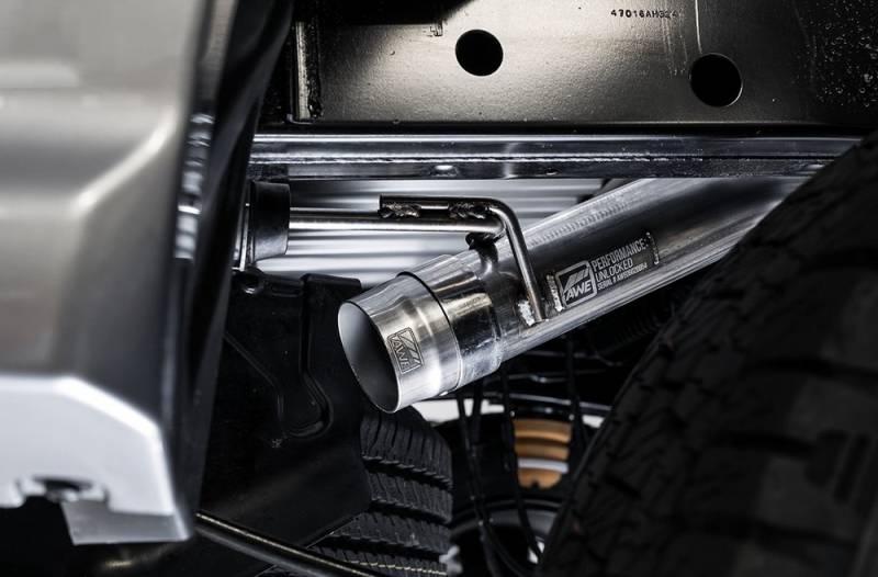 The 0FG Exhaust for Ranger is a rugged 3" T304L stainless steel cat-back configuration with a 100% straight-through design for optimal flow. Featuring AWE's proprietary, patented drone-canceling solution, 180 Technology, the 0FG Exhaust delivers a unique dose of refined aggression out of your Ranger, without any drone at cruising speeds. Regardless of low or high gear, the 0FG Exhaust delivers an optimal soundtrack out of the 2.3T whether you're on the street or on the trails. The included AWE BashGuard is designed to allow drivers, who frequently crawl rough terrain, peace of mind by converting the 0FG Exhaust to end well above the rear axle, tucked up out of the way of danger. Instead of unbolting the 0FG's axle-back section (and tips) and leaving the outlet of the over-axle section exposed, the BashGuard takes the axle-back's place to provide protection against any possible damage from debris. Doing so, the BashGuard ensures the over-axle section's outlet remains true and round, allowing the axle-back (and tips) to be reinstalled with ease. Once you're done crawling, simply bolt the axle-back portion back on and your Ranger is back to looking as good as it sounds. AWE BashGuards are included with every 0FG Exhaust for the �19+ Ford Ranger. Say goodbye to that single exhaust tube hanging awkwardly out of the rear of your Ranger, and hello to a properly built dual merge exit topped with dual 4.5" double-walled, slash-cut Diamond Black tips. Each tip comes complete with an AWE logo, positioned along the slash-cut to allow proper alignment with the Ranger's body lines. Let's get that Ranger rumblin'.