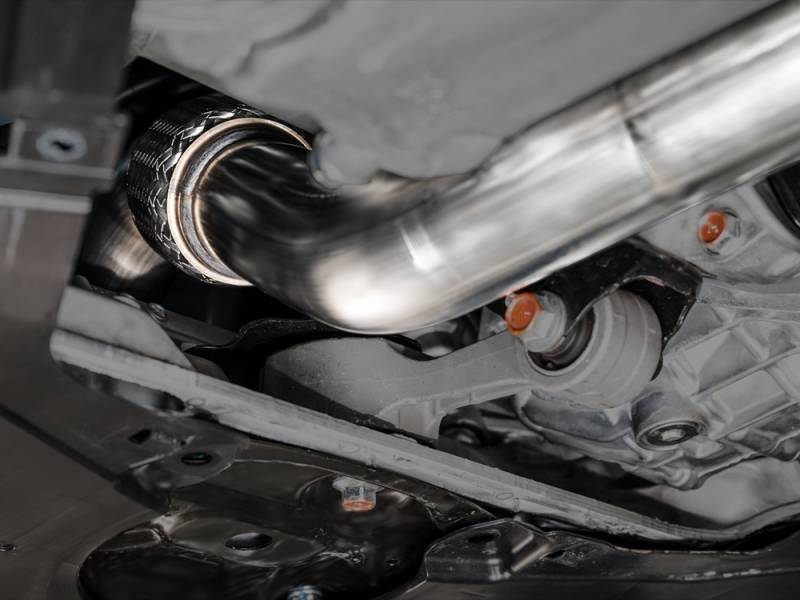 Integrated 3" frontpipe includes a unique flange and gasket on the inlet to accommodate a true 3" inch diameter from inlet to outlet while successfully mating to the factory interface