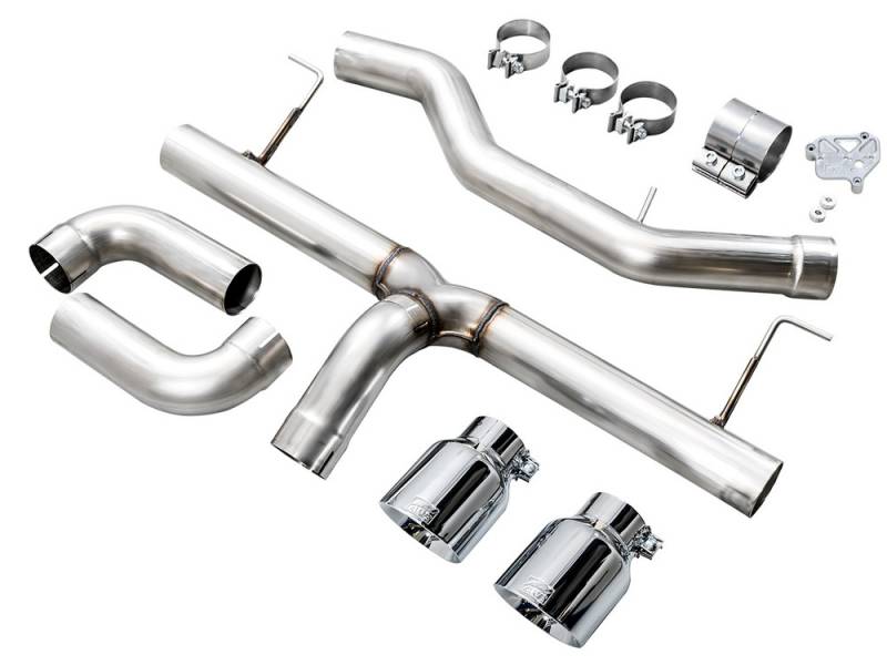 Beginning after the secondary catalyst, the AWE Track Edition picks up right before the rear axle and provides a full single 3" route from this point, then splits to dual 3" tip outlets. The Track Edition has absolutely zero filter -- making its sole purpose to increase the volume out of the B48 engine while remaining completely 50-state emissions compliant (and saving weight and dollars along the way). A simple cut (at the factory cut point) is all it takes, and the Track Edition goes into place via four bolt-on locations. AWE includes a factory clamp for the cut point that allows drivers to easily swap back to their stock rear section if ever needed. Here's some helpful guidance if you're deciding between kits: Due to the structural differences between the 330i and 430i, we are recommending the following per application: for the 330i, with all factory emissions equipment in place, the Track Edition is recommended for those wanting an elevated exhaust experience from within the cabin. If you plan to upgrade anything further upstream on a 330i, consider the Touring Edition - if you go Touring Edition on your 330i without any upstream modifications, it will resemble the stock sound in the cabin. On the 430i, interior acoustics (since it's a coupe) differ when compared to its sedan sibling -- aka it's louder inside. For you 430i drivers, we are recommending the Touring Edition, as the sound is much more pronounced in the cabin on the 430i. The Track Edition on the 430i is a bit rowdy. TLDR: 330i go Track Edition, 430i go Touring Edition!