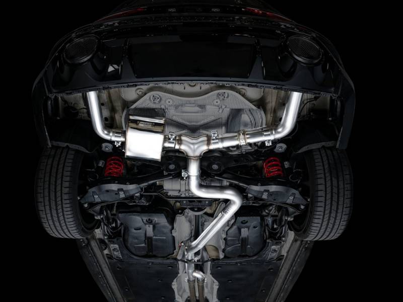 Smooth bends, tight packaging, and two attitudes. The SwitchPath Exhaust is comprised of handcrafted 3-inch and 2.5-inch U.S.-sourced T304L stainless steel single pass, 5-cylinder-specific tuned driver's side muffler with a valved passenger-side tip outlet. SwitchPath retains the factory valve behavior and obeys the ECU's commands based on throttle input, engine speed, Drive Select, and the factory-issued exhaust button within the cabin. Sneaking out in the morning or creeping through town? Close the valve. Drop the hammer (or click into Dynamic mode), and your RS 3 will sing a signature AWE tune with enhanced RS burbles that will provoke a firm grin. AWE's Lifetime Warranty, No CEL Light Guarantee, and Perfect Fitment Guarantee come standard.