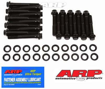 Far superior to any other main bolt kit offered for use in competition engines, ARP main bolts are designed to meet the exacting standards and demands of professional engine builders. Forged from 8740 chrome moly, all bolts feature generous under-head radius and rolled threads for the utmost reliability. The threads are rolled after heattreating, which makes them about 1000% longer fatigue life than most main bolts, which are threaded prior to heat-treating. Available in the popular High Performance Series, which, at a nominal rating of 180,000 psi, is a premium replacement for OEM fasteners, or the 200,000 psi nominal rated Pro Series, application-specific main bolts with reduced wrenching head and are designed for use in competition applications. Parallel-ground, hardened washers are included with each kit.