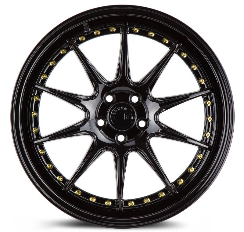 Aodhan Wheels Rim DS07 18x8.5 5x114.3 73.1CB ET35 Gloss Black W /Gold Rivets