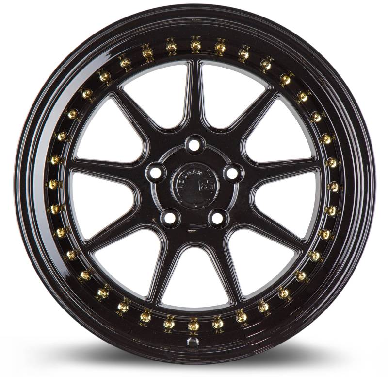 Aodhan Wheels Rim DS-X 18x10.5 5x114.3 73.1CB ET22 Gloss Black W /Gold Rivets