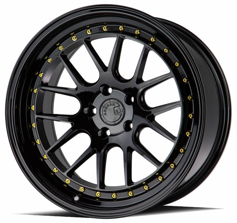 Aodhan Wheels Rim DS06 18x8.5 5x114.3 73.1CB ET35 Gloss Black W /Gold Rivets
