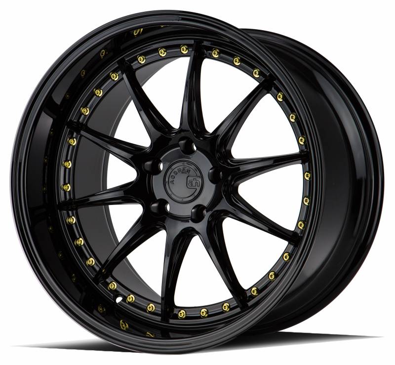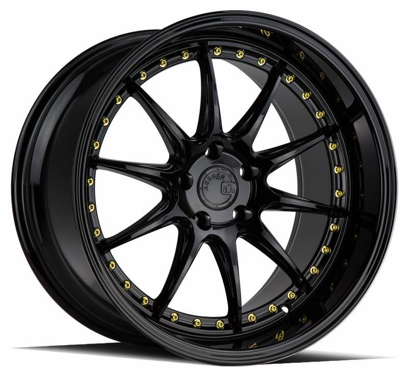 Aodhan Wheels Rim DS07 19x11 5x114.3 73.1CB ET22 Gloss Black W /Gold Rivets