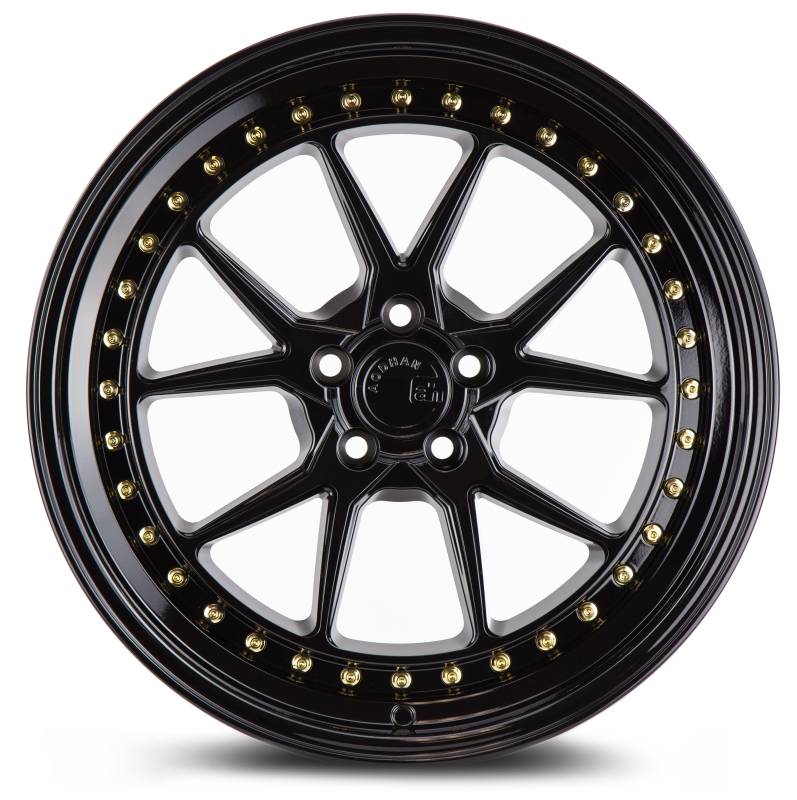 Aodhan Wheels Rim DS08 18x8.5 5x114.3 73.1CB ET35 Gloss Black W /Gold Rivets