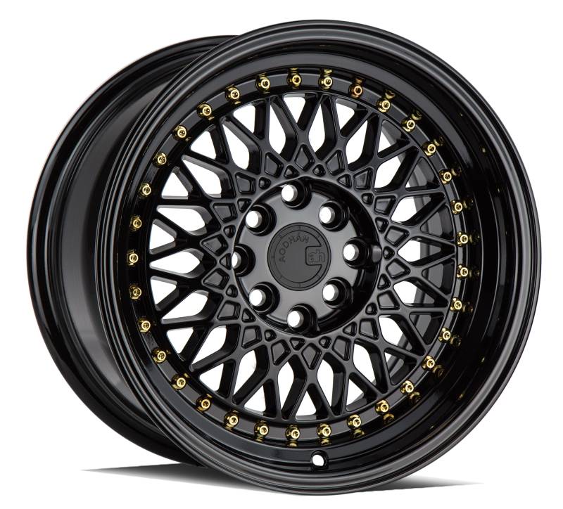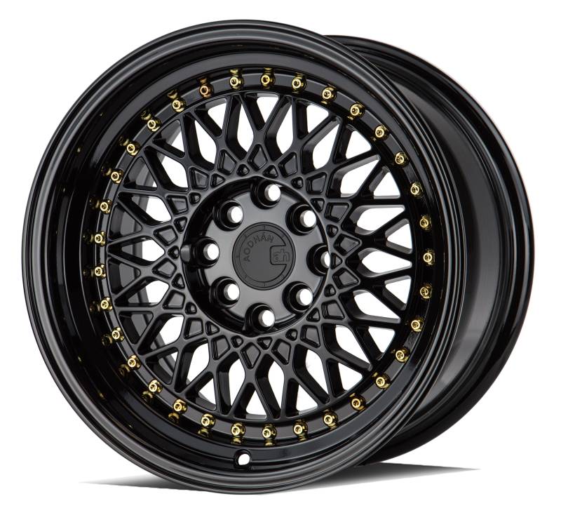 Aodhan Wheels Rim AH05 15x8 4x100/114.3 73.1CB ET20 Gloss Black W /Gold Rivets