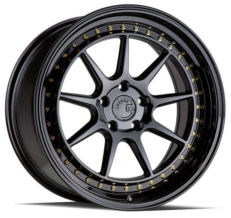 Aodhan Wheels Rim DS-X 19x8.5 5x114.3 73.1CB ET35 Gloss Black W /Gold Rivets