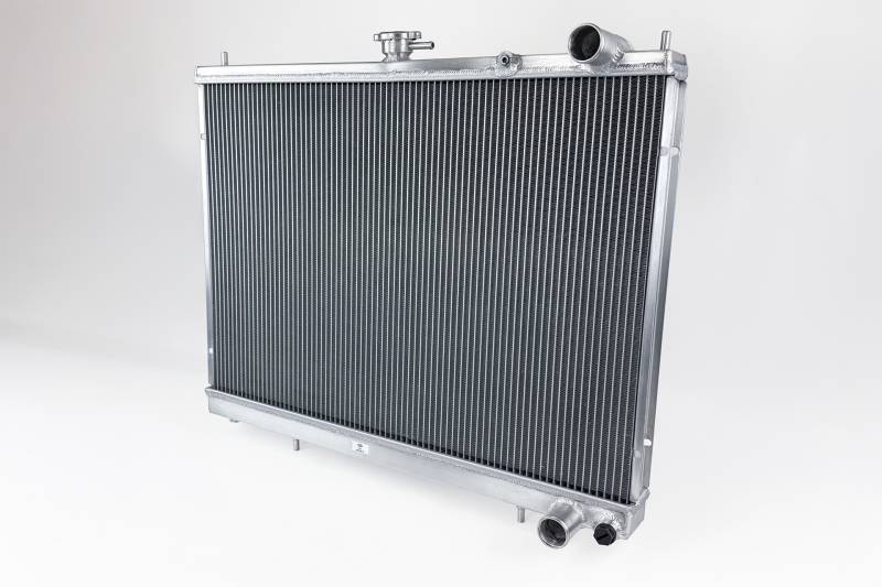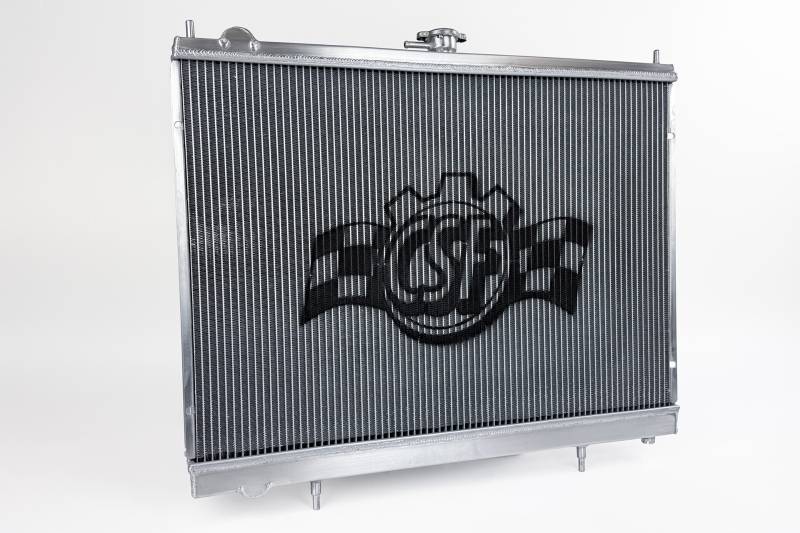 The inline 6 motors found in the R34 Skylines are quite robust. Whether you have a basic 2.0L RB20 or legendary RB26 you probably don't worry too much about engine reliability. The GT-R's RB26 is well known for making big power and being reliable while doing it. However power gains come at the cost of a lot of extra heat. While the factory radiator does a decent job keeping heat in check on stock setups it's always better to have more protection especially as you're making big power upgrades.; The 2-Row 42mm core greatly not only increases the fluid capacity of the radiator but also improves the cores ability to dissipate heat. CSF's Exclusive B-Tube Technology increases the heat transfer by approximately 15% over regular oval welded tubes. In addition the super-efficient multi-louvered fins maximize airflow through the core for the best possible performance. More cooling rows also improve the overall efficiency of the radiator. More cooling tubes means more surface area for the coolant's heat to dissipate from.; Each end tank is constructed from high-grade aluminum for strength and durability. The TIG-Welded construction further increases the overall strength. Each top end tank includes a pre-plugged 1/8th NPT and each bottom end tank includes M16x1.5P ports for temperature sensors. The CSF radiators mount in the factory location and require no modifications or cutting.; Each radiator includes a 1.4 bar high pressure cap with an embossed CSF logo. High pressure radiator caps raise the boiling point of coolant. This helps protect the system from boiling over at higher operating temperatures. While the radiator is designed to keep the system from reaching such temperatures it is always good to have extra protection for situations where the coolant gets too hot.