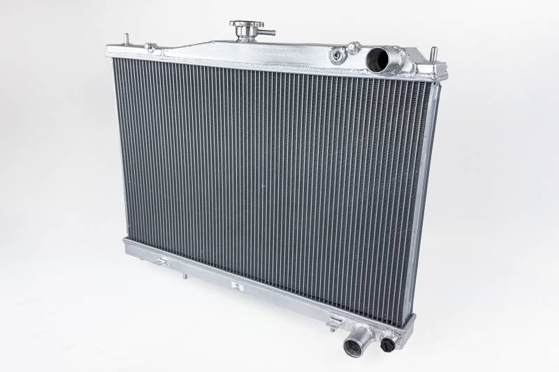 The inline 6 motors found in the R33 Skylines are quite robust. Whether you have a basic 2.0L RB20 or legendary RB26 you probably don't worry too much about engine reliability. The GT-R's RB26 is well known for making big power and being reliable while doing it. However power gains come at the cost of a lot of extra heat. While the factory radiator does a decent job keeping heat in check on stock setups it's always better to have more protection especially as you're making big power upgrades.; The 2-Row 42mm core greatly not only increases the fluid capacity of the radiator but also improves the cores ability to dissipate heat. CSF's Exclusive B-Tube Technology increases the heat transfer by approximately 15% over regular oval welded tubes. In addition the super-efficient multi-louvered fins maximize airflow through the core for the best possible performance. More cooling rows also improve the overall efficiency of the radiator. More cooling tubes means more surface area for the coolant's heat to dissipate from.; Each end tank is constructed from high-grade aluminum for strength and durability. The TIG-Welded construction further increases the overall strength. Each top end tank includes a pre-plugged 1/8th NPT and each bottom end tank includes M16x1.5P ports for temperature sensors. The CSF radiators mount in the factory location and require no modifications or cutting.; Each radiator includes a 1.4 bar high pressure cap with an embossed CSF logo. High pressure radiator caps raise the boiling point of coolant. This helps protect the system from boiling over at higher operating temperatures. While the radiator is designed to keep the system from reaching such temperatures it is always good to have extra protection for situations where the coolant gets too hot.