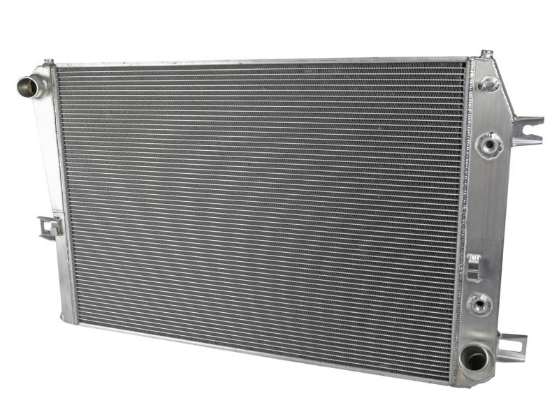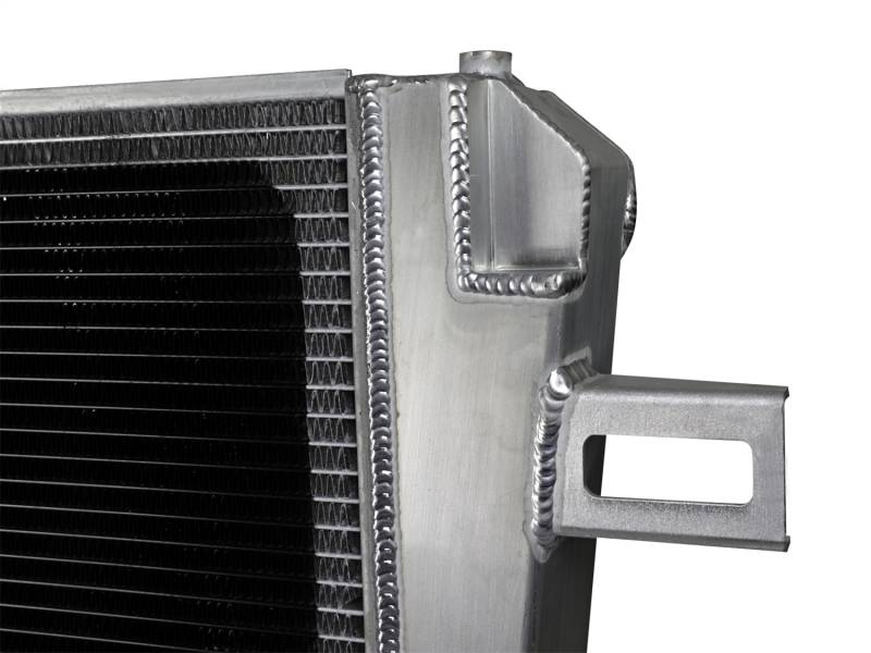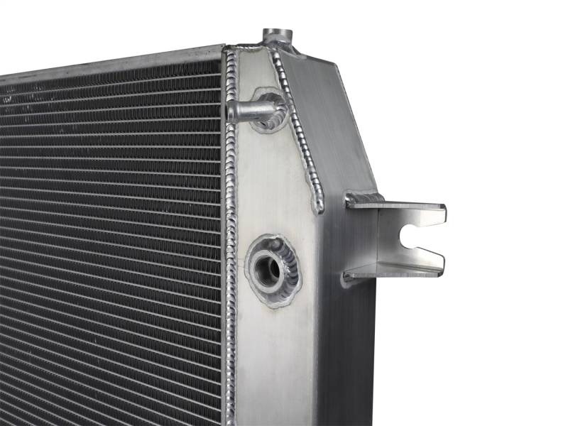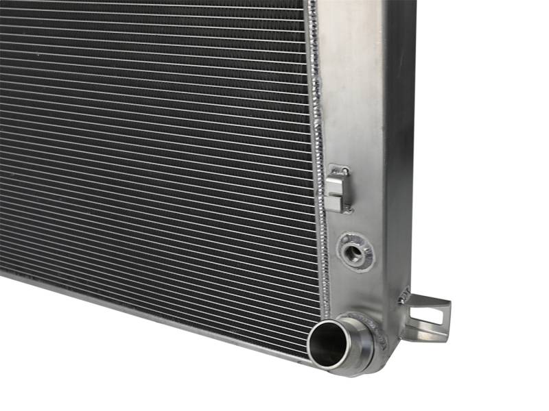 Oversized Tube and Fin Core: This BladeRunner Street Series Radiator features a 2-3/4" thick tube and fin core which provides greater heat dissipation and better coolant flow than the factory radiator for optimum cooling efficiency. End Tanks: The fabricated end tanks are constructed out of 1/8" aluminum plates for strength and durability. Billet Aluminum Inlet/Outlet: Billet aluminum inlet and outlet for long-lasting reliability. TIG-Welded: 100% TIG-welded for proven strength and durability. Brass Drain Valve: BladeRunner Street Series Radiators include a brass drain valve with fitting to easily connect a hose for draining coolant. Perfect Fit: Utilizes the factory mounting locations to provide stability for a hassle-free installation. Custom Appearance: Brushed aluminum finish with an aFe POWER logo painted on the front. When it comes to engineering for power, performance, protection and value, aFe POWER is the only choice.
