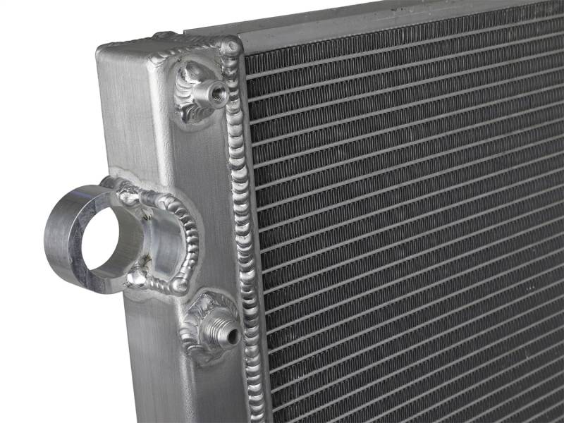 This BladeRunner Street Series Radiator features a 1-9/16" thick tube and fin core which provides greater heat dissipation and better coolant flow than the factory radiator for optimum cooling efficiency. The fabricated end tanks are constructed out of 1/8" aluminum plates for strength and durability. Billet aluminum inlet and outlet for long-lasting reliability. 100% TIG-welded for proven strength and durability. BladeRunner Street Series Radiators include a brass drain valve with fitting to easily connect a hose for draining coolant. Utilizes the factory mounting locations to provide stability for a hassle-free installation. Brushed aluminum finish with an aFe POWER logo painted on the front.