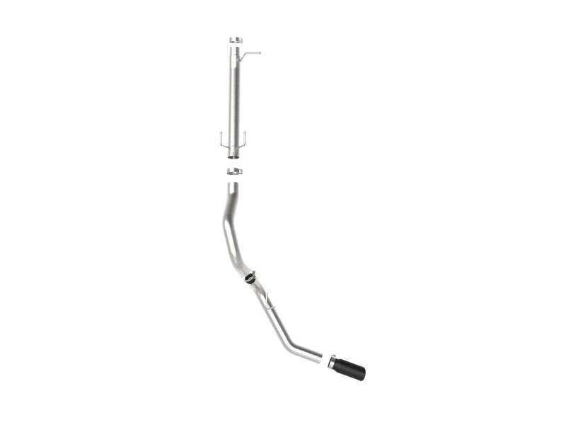 This axle-back exhaust system is constructed of 3-1/2" - 4" mandrel-bent 409 stainless steel tubing for maximum strength and durability. Finishing off this exhaust system is a 6" diameter black stainless steel clamp-on exhaust tip. The tip features an aFe POWER logo plate riveted on for a unique style. This system produces a throaty sound unleashing all available horsepower and torque. Utilizing a factory style flange and hangers this system is a direct bolt-on system, which requires no cutting or modifications for a hassle-free installation. Utilizing state-of-the-art computer-aided design technology, this exhaust system is designed for custom, high tolerance factory fitment. 100% MIG-Welded for race-proven strength and durability.