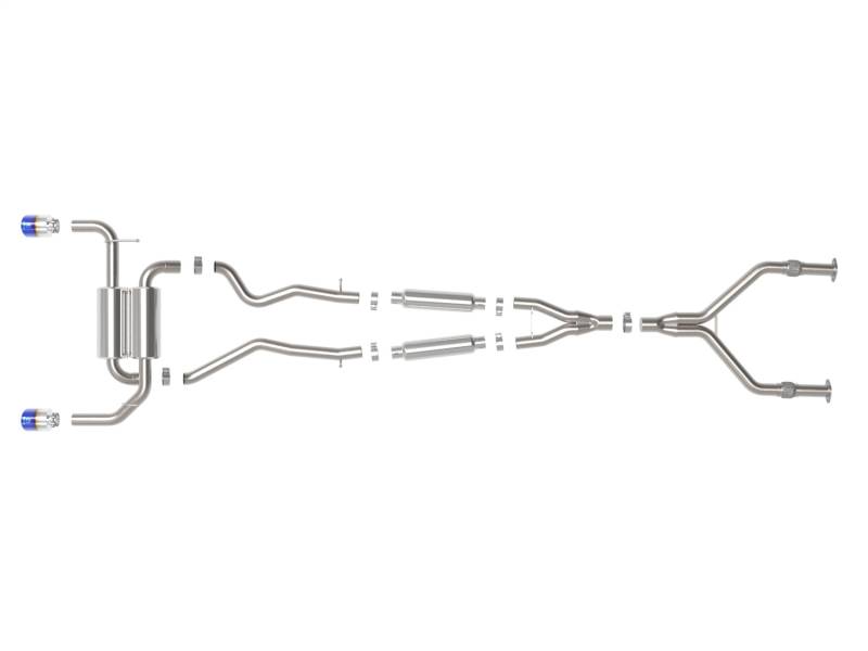 aFe 14-15 Infiniti Q50 V6 3.7L Takeda 2-1/2in 304 SS Cat-Back Exhaust System w/ Blue Flame Tips
