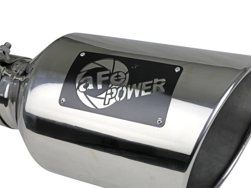 This direct-fit clamp-on tip is constructed from 304 stainless steel and features a polished finish for corrosion resistance for long lasting good looks. Designed to fit 4" exhaust systems; 4" inlet x 8" outlet and 15" inch length. This tip features an aFe POWER logo for an aggressive, custom look. A high quality stainless steel clamp is used for a complete 360 degree sealing surface. This product does not require a CARB EO#.