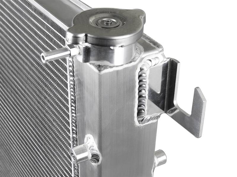 Oversized Tube and Fin Core: This BladeRunner Street Series Radiator features a 2" tube and fin core which provides greater heat dissipation and better coolant flow than the factory radiator for optimum cooling efficiency. End Tanks: The fabricated end tanks are constructed out of 1/8" aluminum plates for strength and durability. Billet Aluminum Inlet/Outlet: Billet aluminum inlet and outlet for long-lasting reliability. TIG-Welded: 100% TIG-welded for proven strength and durability. Brass Drain Valve: BladeRunner Street Series Radiators include a brass drain valve with fitting to easily connect a hose for draining coolant. Perfect Fit: Utilizes the factory mounting locations to provide stability for a hassle-free installation. Custom Appearance: Brushed aluminum finish with an aFe POWER logo painted on the front. When it comes to engineering for power, performance, protection and value, aFe POWER is the only choice.