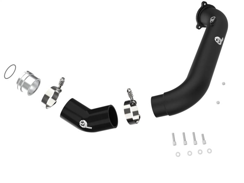 Smooth transitions in the mandrel-bent aluminum tubing decrease turbulence and minimize pressure loss, increasing horsepower and torque. This pipe kit includes high-quality, stainless-steel, spring-loaded T-bolt clamps and heavy-duty, 5-ply, polyester reinforced silicone couplings. This charge pipe kit features factory style billet aluminum quick-connect adapter with an o-ring seal to ensure a leak-free fit while maintaining superior strength and durability. Finished in wrinkle black powder coating with a unique laser-etched aFe POWER logo for a custom look.