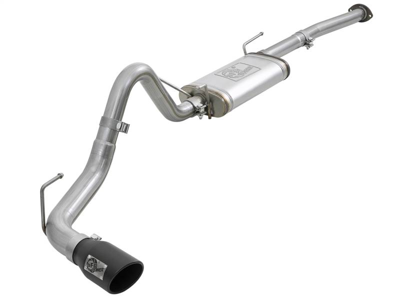 Release the untapped horsepower, torque and sound from your Toyota Tacoma L4-2.7L / V6-3.5L with aFe POWER Mach Force Xp exhaust system. Constructed from 2-1/2" to 3" mandrel bent 409 stainless steel for improved flow and long-lasting performance, the system is 100% hand MIG-welded by certified craftsmen for race proven strength and durability. The Mach Force Xp system features a high-flow, straight through designed, 409 stainless steel muffler for improved performance gains while delivering an aggressive tone. The Mach Force Xp is finished off with a 4-1/2" diameter, stainless-steel exhaust tip for a custom look and includes quality hardware and clamps for a hassle-free install. Flow and Performance: This Mach Force-Xp Series exhaust system is constructed of 2-1/2" and 3" mandrel bent 409 stainless steel for maximum flow and low turbulence increasing torque, horsepower and improved throttle response. Aggressive Sound: A high-flow, straight through designed 409 stainless steel 18" length muffler improves performance gains across the power band while producing an aggressive tone. 4-1/2" Exhaust Tip: Finishing off this system is a 4-1/2" black, angle-cut, stainless steel exhaust tip w/ laser-cut aFe POWER badge for quality brand recognition and a custom-styled look. Perfect Fit: OE-style bayonet hangers are used to maintain a stable pipe location during any driving conditions. The bayonet tip holds the hanger bushing in place for an OE style, long lasting fit. Installation is a Snap: This Mach Force-Xp exhaust system uses all factory mounting locations providing stability and a hassle-free installation.