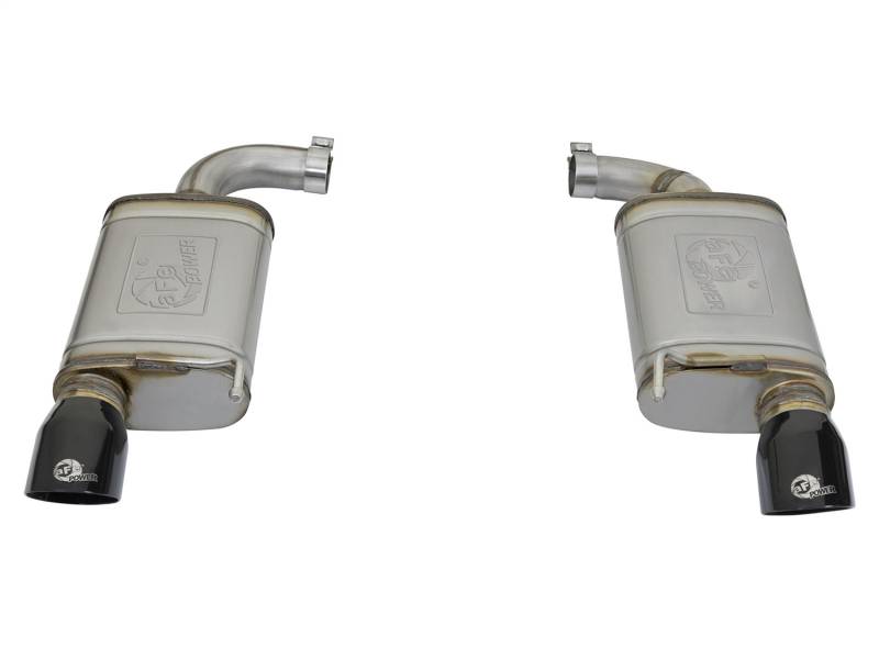 aFe POWER Mach Force-Xp axle-back exhaust system for the Ford Mustang with the L4-2.3L (t) EcoBoost & V6-3.7L engine utilizes 2-1/2 IN stainless steel tubing and incorporates dual, high-flow mufflers to improve performance across the power band while maintaining an aggressive sound. This system is finished off with dual 4 IN diameter gloss black 304 stainless steel tips and include high quality clamps for a secure hassle-free installation.