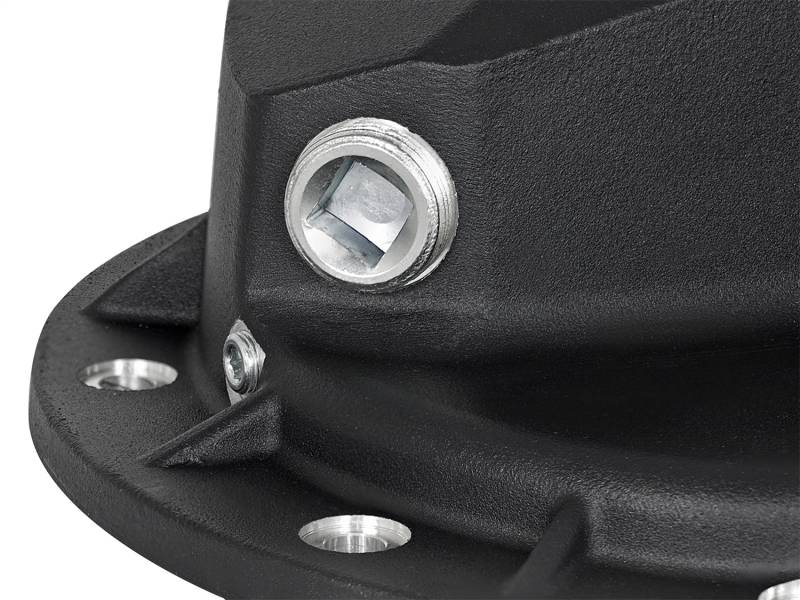 aFe Powers new front-end differential cover brings performance engineering to the protection of your trucks front-end. This differential cover has a 3-1/2 quart lube capacity (factory cover holds 2-1/2 quarts) at the factory fluid level line, a magnetic drain plug and a magnetic fill plug to remove unwanted debris. Built-in external fins transfer heat from the fluid to the outside air for maximum cooling. aFe has also designed a large oil level sight glass with calibration plug set to the factory fluid level to eliminate overfilling. This differential cover is constructed out of durable die-cast A380 aluminum with reinforced ribs and a wrinkle black powder-coating for maximum strength and style. When it comes to engineering for power, performance, protection and value, aFe Power is the only choice.