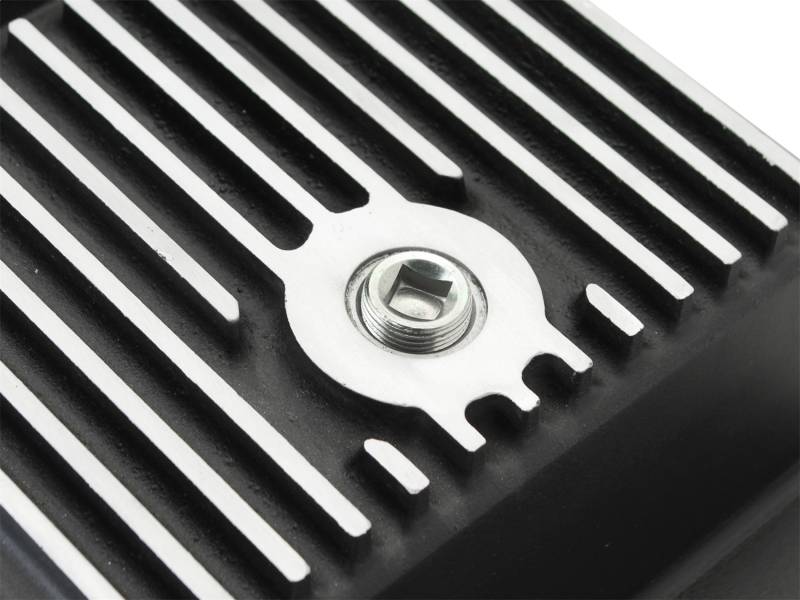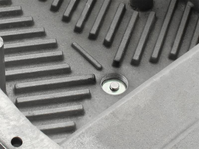 aFe POWER Pro Series deep transmission pan brings performance engineering to the protection of your trucks transmission. This transmission pan has additional capacity for 7 more quarts over stock at the factory line, a magnetic drain plug and a 1/8" NPT port for your temperature sensor. Built-in internal and external fins transfer heat from the fluid to the outside air for maximum cooling. This transmission pan is constructed out of durable die-cast A380 aluminum with reinforced ribs and a wrinkle black powder-coating for maximum strength and styling.