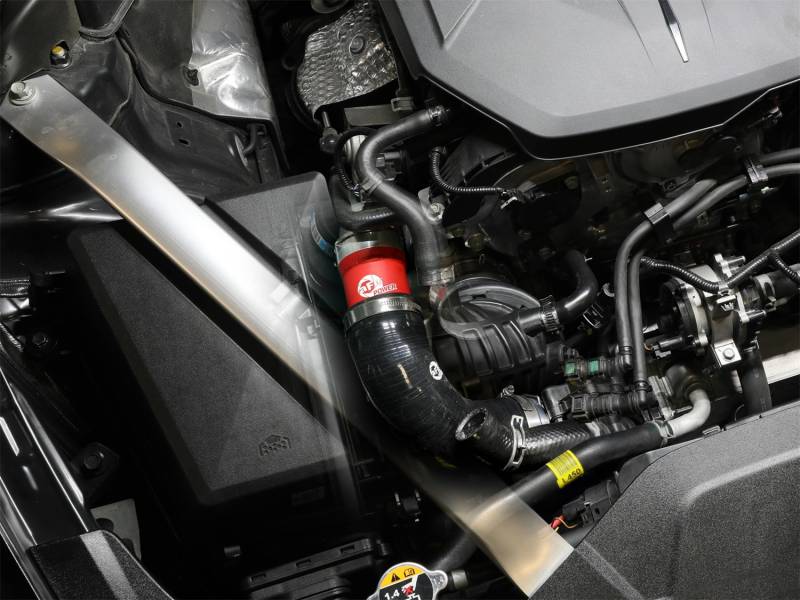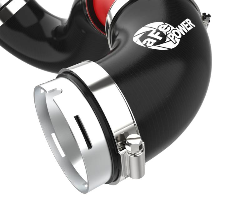 Smooth transitions in the mandrel-bent aluminum pipes decrease turbulence and minimize pressure loss, increasing horsepower and torque. This charge pipe kit provides a smooth transition between the turbo and the engine for lower operating temperatures and increased power. This kit includes high-quality, stainless-steel, smartseal clamps and heavy-duty, 5-ply, polyester reinforced silicone couplings. This charge pipe kit also features factory style billet aluminum quick-connect adapters with o-ring seals to ensure a leak-free fit while maintaining superior strength and durability. Finished in textured red powder coating with a unique laser-etched aFe POWER logo for a custom look.