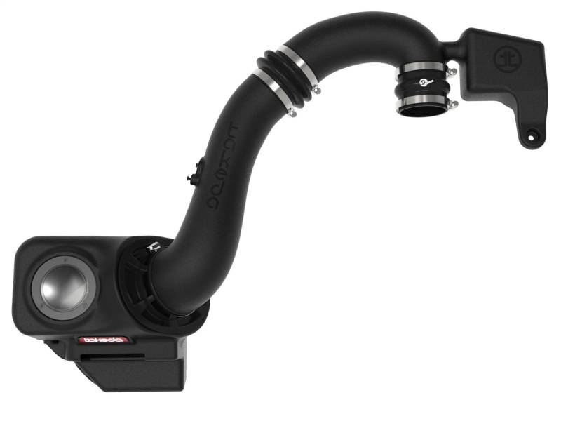 This aFe POWER Pro DRY S is a 7-1/2" tall, oil-free, 360-degree conical flow performance air filter with three layers of synthetic media for maximum convenience. Its progressive layering provides great filtration efficiency and dust holding capacity, while not requiring the use of oils. This media is best suited for street and light off-road use. This system features a two-piece, computer-designed, roto-molded intake tube to achieve maximum power gains while maintaining a perfect fit. Constructed from XLPE (cross-linked polyethylene) polymer, it is heat soak resistant and extremely durable. A factory-style Helmholtz Chamber is integrated into its design, toning down any drone. The sealed XLPE polymer housing features a rugged design, as well as a clear sight window, allowing for hassle-free filter inspection. aFe POWER's patent pending filter-to-housing interface eliminates the use of an overabundance of parts, further simplifying the installation process. The housing utilizes the factory air inlet, using no additional hardware, and features an optional auxiliary air inlet that pulls in additional air. All stainless-steel clamps, hardware, and silicone couplings are included for a hassle-free installation. This is a direct bolt-on kit that requires no cutting or drilling on OEM parts