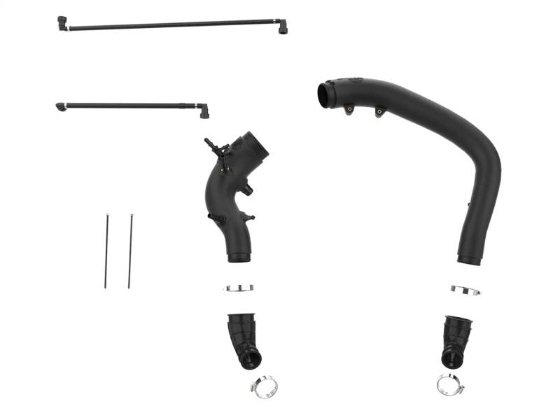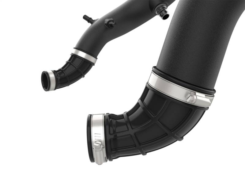 These turbo inlets are the perfect addition to any aFe POWER air intake. They remove the air flow restriction of the factory turbo inlets and guarantee maximum air flow to the turbos for maximum power. They provide a smooth transition for the air from the air intake system to the turbos with minimum restriction. This system is precisely designed on CAD software for perfect fitment and maximize the air flow path to the turbos. The tubes are constructed of high-quality cross-linked polyethylene (XLPE) to resist heat and impact. Stainless steel rings are pressed in the tube ends to protect the tubes from collapsing under pressure and heat. Silicone couplings are reinforced with molded ribs offering heat resistance and excellent protection against wear and deterioration, and mate directly to the turbos. Stainless steel clamps are also provided to guarantee perfect seal years after years. aFe POWER engineers spent countless hours and created multiple 3D printed prototypes to guarantee perfect fitment while producing maximum power. Each iteration has been tested on our in-house dyno alongside extensive road testing both on the street and off-road, to make certain these turbo inlet tubes will perform in any situation. This kit comes with all necessary fittings pre-installed on the tubes for a fast and easy installation. All factory connections are maintained to ensure your truck runs perfectly. These turbo inlets works perfectly with all aFe POWER air intake systems as well as the factory air intake system.