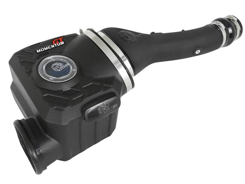 A custom computer designed roto-molded housing eliminates the use of multiple components and ensures the coolest air intake charge available. A clear sight window allows for filter inspection without removal of the airbox. The roto-molded housing is made out of black cross-linked polyethylene. The housing is designed to retain the same water fording height as the factory intake system while providing more air flow and better protection. This System uses a CAD designed, dyno-tuned, roto-molded intake tube to achieve maximum power gains while maintaining a perfect fit. This tube has built-in resonance chambers to catch un-wanted air intake noises. This Momentum GT intake system was designed around the largest filter possible to allow maximum performance and filtration. This filter has a massive 5" round flange and is 8" tall with an inverted top and features our pre-oiled Pro 5R media. The Pro 5R performance air filter features 5-layers of progressively finer mesh cotton media providing maximum airflow and performance. The unique air filter to housing interface (patent pending) allows for maximum filter size which increases the available air volume while simplifying the installation process. Premium stainless steel T-bolt clamps are used for durability and provide the best corrosion resistance possible. Momentum GT intakes are designed with fewer parts for a quick and simple installation