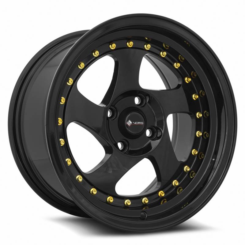 Vors Wheels Rim VR2 15x8 4x108 ET20 73.1CB All Black Gold Rivet