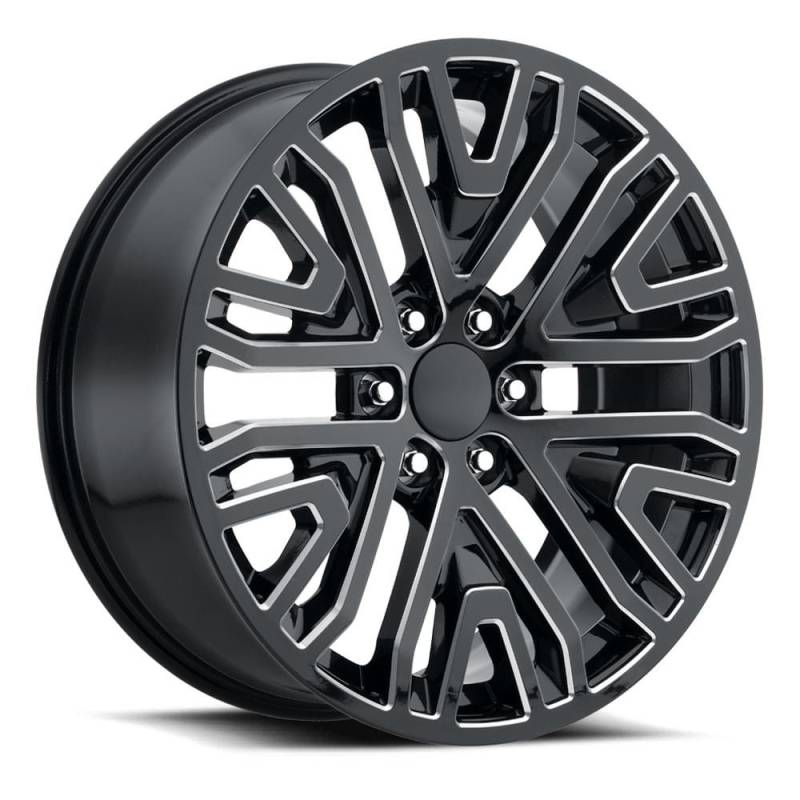title: GMC Mesh Wheels 22X9 6X5.5 +28 HB 78.1 2019 GMC Mesh Split 6 Spk Gloss Black/Milled With Cap FR Series 93 Factory Reproductions