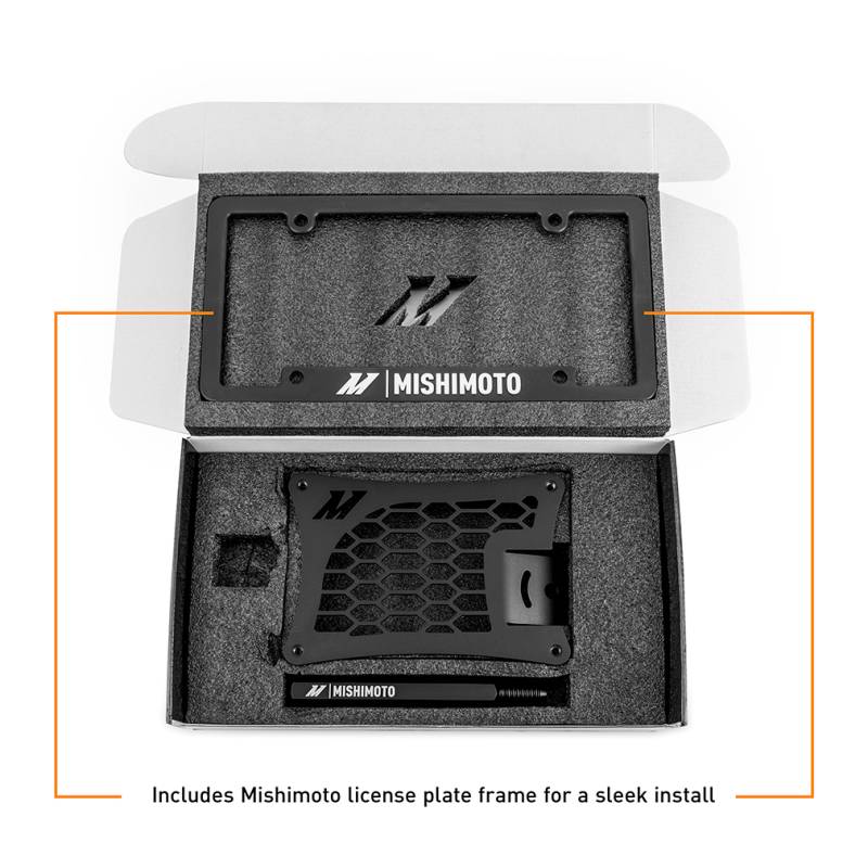 TechSpec Includes: (1) License Plate Relocation Kit--(1) Mishimoto License Plate Frame--(1) Hardware Pack--Mishimoto Lifetime Warranty