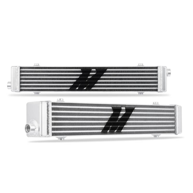 Sometimes you just need a simple no-frills cooler to ensure your oil stays at the right temperature no matter what. This Mishimoto tube-and-fin crossflow performance oil cooler is what you've been searching for. We designed this cooler using a highly efficient tube-and-fin core to meet the demands of high-performance applications while maintaining light weight. But don't take its simple exterior for granted this cooler packs in the performance. The leading edges of our cooler's tubes are rounded to allow incoming air to pass smoothly through the core without deflection. There the louvered fins force the air to wind through the core increasing time in contact with the fins and improving heat transfer. Finally the interiors of the tubes feature turbulators that increase tube surface area and agitate the oil to ensure it contacts the entire tube further increasing heat transfer. These features combine to create a lightweight oil cooler that's efficient enough to meet the needs of even high-performance vehicles. The full-aluminum TIG-welded end tanks ensure leak-free performance in the harshest environments. The compact 23-inch x 4-inch x 3-inch overall size and universal M8x1.25 mounting bosses on the top and bottom of the core make mounting this oil cooler in the bumper or front cooling stack easy. -10 ORB inlet and outlet are compatible with many widely available -AN adapters including Mishimoto's -10 ORB to -10AN and 3/4-inch fittings. Combine this with our PFTE or CPE braided steel lines and -AN fittings for a bulletproof oil cooling solution. Like all Mishimoto products this tube-and-fin crossflow performance oil cooler features our Mishimoto Lifetime Warranty for a lifetime of performance.