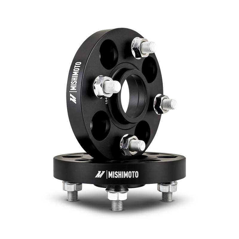 Wheel spacers are a great way to create brake clearance add track width prevent tire rub and provide ideal wheel fitment on your vehicle. Mishimoto now offers a complete catalog of wheel spacers for a variety of common thread patterns center bores and thicknesses. Quality material selection precise engineering and meticulous manufacturing are critical elements to creating our incredibly robust products and our wheel spacers are no different. Each spacer is forged from 6061-T6 aluminum. This material offers a perfect blend of strength and lightness both are extremely vital in this application. Our spacers feature grade-12.9 steel studs and lug nuts ensuring a safe and secure installation. Mishimoto's hub-centric design provides a direct extension of the axle hub for precise wheel fitment reduced load on the hardware and ensures safe and smooth driving.----Mishimoto wheel spacers feature a black anodized finish to ensure protection against corrosion. Each kit contains two wheel spacers with pre-installed studs and all hardware necessary for installation. As with all our products this wheel spacer kit includes our signature Lifetime Warranty.; Wheel spacers are a great way to create brake clearance add track width prevent tire rub and provide ideal wheel fitment on your vehicle. Mishimoto now offers a complete catalog of wheel spacers for a variety of common thread patterns center bores and thicknesses. Quality material selection precise engineering and meticulous manufacturing are critical elements to creating our incredibly robust products and our wheel spacers are no different. Each spacer is forged from 6061-T6 aluminum. This material offers a perfect blend of strength and lightness both are extremely vital in this application. Our spacers feature grade-12.9 steel studs and lug nuts ensuring a safe and secure installation. Mishimoto's hub-centric design provides a direct extension of the axle hub for precise wheel fitment reduced load on the hardware and ensures safe and smooth driving.----Mishimoto wheel spacers feature a black anodized finish to ensure protection against corrosion. Each kit contains two wheel spacers with pre-installed studs and all hardware necessary for installation. As with all our products this wheel spacer kit includes our signature Lifetime Warranty.