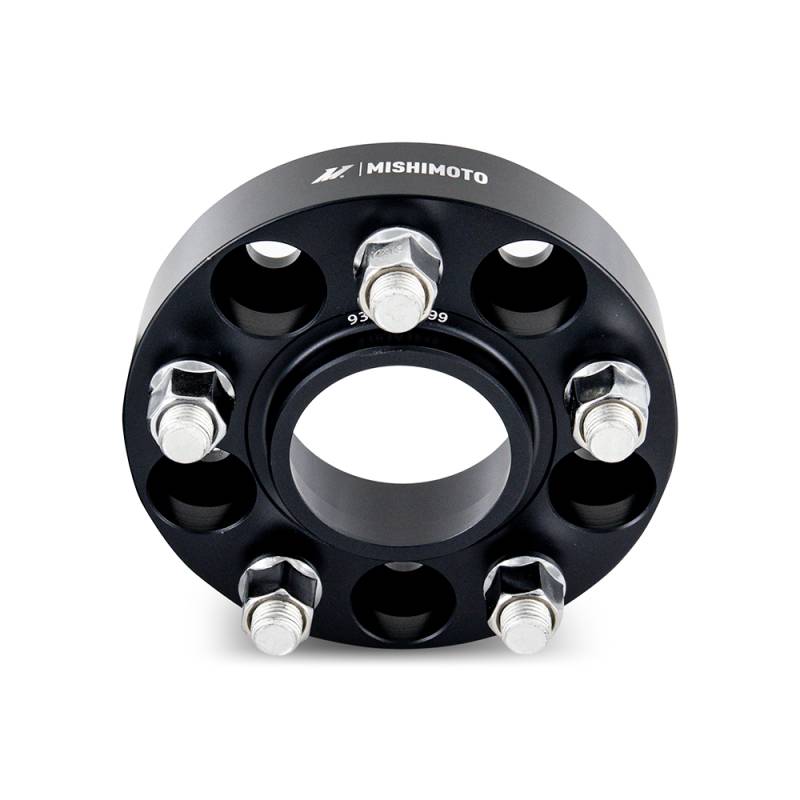 Wheel spacers are a great way to create brake clearance add track width prevent tire rub and provide ideal wheel fitment on your vehicle. Mishimoto now offers a complete catalog of wheel spacers for a variety of common thread patterns center bores and thicknesses. Quality material selection precise engineering and meticulous manufacturing are critical elements to creating our incredibly robust products and our wheel spacers are no different. Each spacer is forged from 6061-T6 aluminum. This material offers a perfect blend of strength and lightness both are extremely vital in this application. Our spacers feature grade-12.9 steel studs and lug nuts ensuring a safe and secure installation. Mishimoto's hub-centric design provides a direct extension of the axle hub for precise wheel fitment reduced load on the hardware and ensures safe and smooth driving. Mishimoto wheel spacers feature a black anodized finish to ensure protection against corrosion. Each kit contains two wheel spacers with pre-installed studs and all hardware necessary for installation. As with all our products this wheel spacer kit includes our signature Lifetime Warranty.; Wheel spacers are a great way to create brake clearance add track width prevent tire rub and provide ideal wheel fitment on your vehicle. Mishimoto now offers a complete catalog of wheel spacers for a variety of common thread patterns center bores and thicknesses. Quality material selection precise engineering and meticulous manufacturing are critical elements to creating our incredibly robust products and our wheel spacers are no different. Each spacer is forged from 6061-T6 aluminum. This material offers a perfect blend of strength and lightness both are extremely vital in this application. Our spacers feature grade-12.9 steel studs and lug nuts ensuring a safe and secure installation. Mishimoto's hub-centric design provides a direct extension of the axle hub for precise wheel fitment reduced load on the hardware and ensures safe and smooth driving.----Mishimoto wheel spacers feature a black anodized finish to ensure protection against corrosion. Each kit contains two wheel spacers with pre-installed studs and all hardware necessary for installation. As with all our products this wheel spacer kit includes our signature Lifetime Warranty.