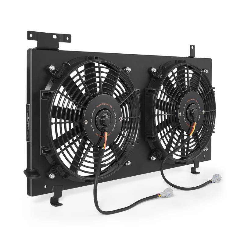 TechSpec Includes: (1) Aluminum Fan Shroud--(2) 12-inch Mishimoto slim electric fans with stock-style connectors--Mishimoto Lifetime Warranty