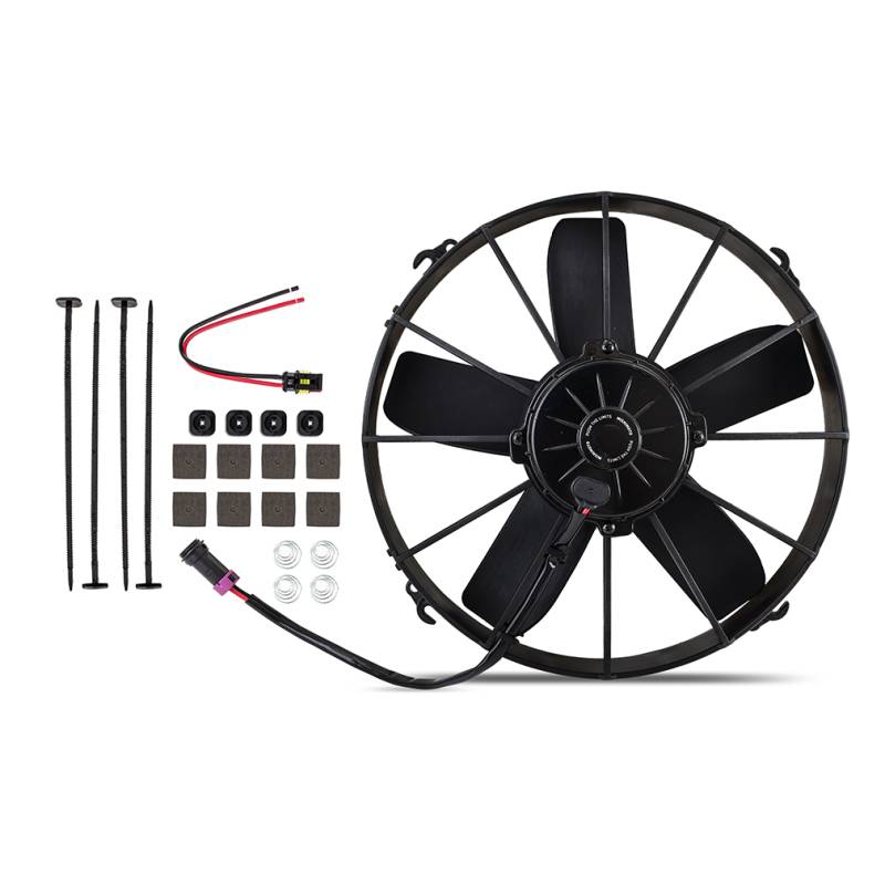 TechSpec Includes: (1) Mishimoto Fan--Mounting Kit: --(4) Heavy-Duty Plastic Fasteners--(8) Adhesive Foam Protective Pads--(4) Dampening Springs--(4) Fastener End Connectors--Mishimoto Lifetime Warranty