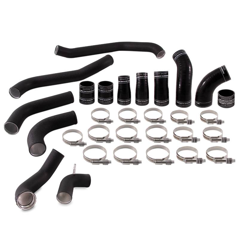 TechSpec Includes: (1) Aluminum Cold-Side Intercooler Pipe w/ CNC Quick-Disconnect Flange--(1) Aluminum Cold-Side Intercooler Pipe w/ CNC IAT Sensor Housing--(4) Aluminum Hot-Side Intercooler Pipes--(8) Silicone Boots w/ DuraCore Technology--(16) Constant-Tension Worm Gear Clamps--Mishimoto Lifetime Warranty